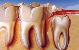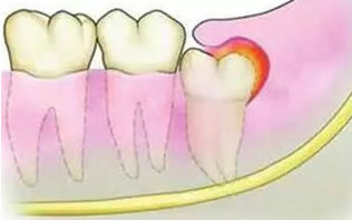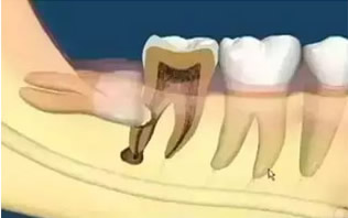 埋伏阻生齿埋在牙槽骨内,其牙冠周围软组织与牙齿之间构成一盲袋,易堆食物残渣和细菌,反复发作牙周炎。