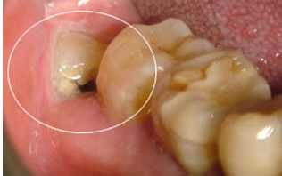 造成邻牙病变智齿萌出的空间不足,异位阻生斜靠在第二磨牙上,侵占邻牙位置,造成邻牙病变。